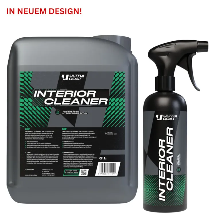 Interior Cleaner (Früher Fresh Maker) von UltraCoat ist ein multifunktionaler, pH-neutraler Reiniger zur Reinigung des Fahrzeuginnenraums. Reinigt Oberflächen wie Kunststoff, Leder, Polster, Alcantara, Vinyl, Aluminium und Holz.
